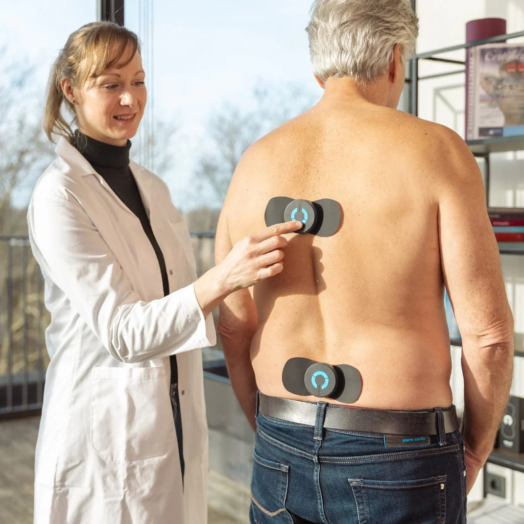 Es una solución ideal para quienes sufren dolores musculares o nerviosos. El dispositivo se aplica fácilmente con una almohadilla de gel adhesiva, que puede colocarse en casi cualquier zona del cuerpo.